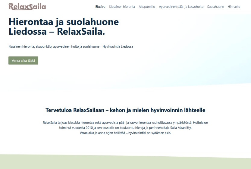 Tein RelaxSailalle kotisivut 2025 ja olen kuvannut kaikki kuvat sivuille.